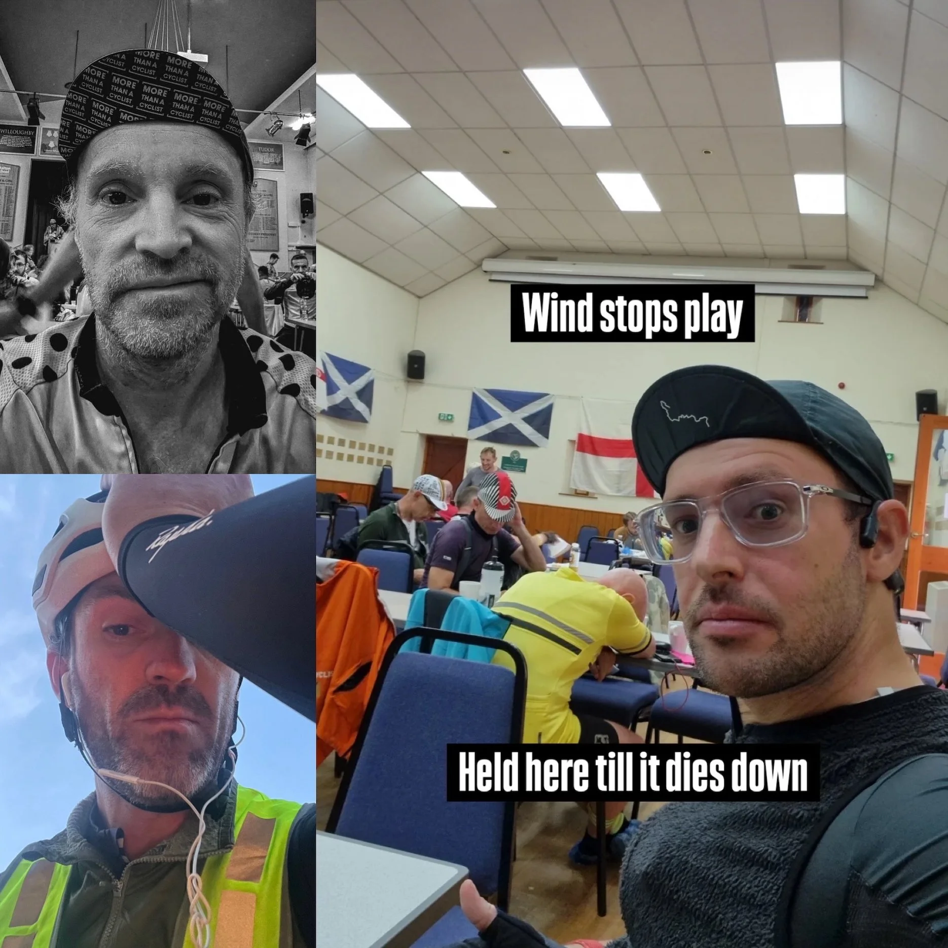 Neil and Ollie are now stuck in Richmond, North Yorkshire, and JB is at a stand still as you can see by his photo, as they have suspended the event because of the high winds and poor weather, they are all hoping to be on the move again by 7.30pm.